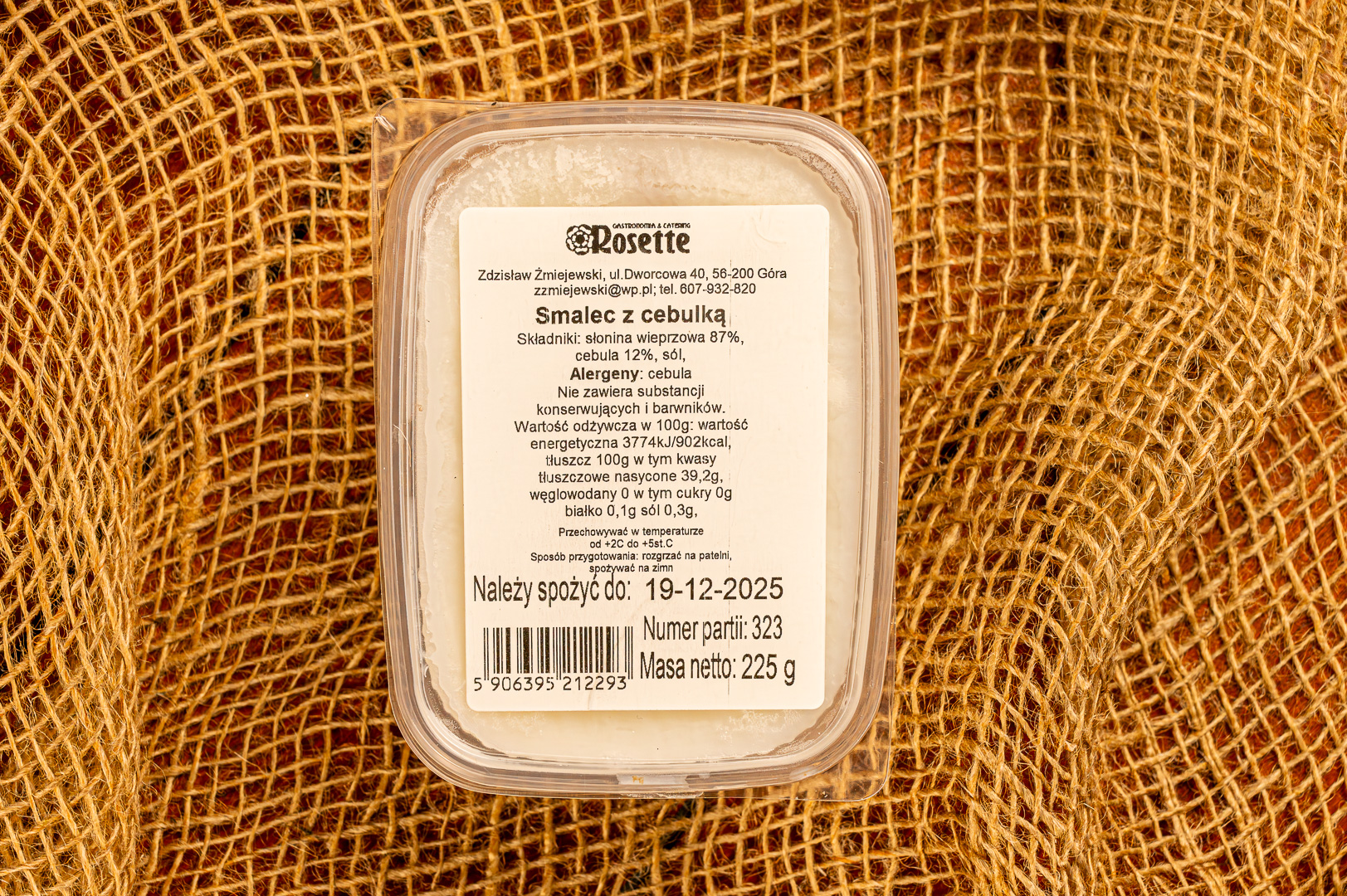 Składniki: słonina wieprzowa 87%, cebula 12%, sól,